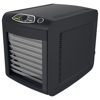 Crank out lots of delicious, dried fruit and vegetable snacks and jerky at home with Cabela’s Deluxe 10-Tray Dehydrator. A powerful, rear-mounted, 900W heater and 6.5″ fan force hot air horizontally across each individual tray towards the core to ensure even, consistent drying ‚Äî eliminating the need to rotate trays during the cooking process. High-capacity design offers 1,409 sq. in. of cooking space over 10 trays. The adjustable thermostat delivers precise dehydration temperatures between 80¬∞-160¬∞F. A fold-down door with magnetic closure and clear acrylic viewing window let you monitor cooking without opening the door and disturbing the consistent internal temperature. Durable polypropylene trays won’t get brittle, ensuring years of use. Side-mounted air slots exhaust heated air outward. Removable drip tray and drying trays make cleanup quick and simple. Comes with a quick-reference guide. 20.5″L x 14.4″W x 16.2″H. Weight: 20.9 lbs. High-capacity dehydrator for home use Powerful, rear-mounted, 900W heater and 6.5″ fan Force hot air horizontally across trays towards the core No tray rotation needed 1,409 sq. in. of cooking space over 10 trays Adjustable thermostat – precise temperatures between 80¬∞-160¬∞F. 10 heavy-duty polypropylene trays Side-mounted air slots – exhaust heated air outward Removable drip tray and drying trays
