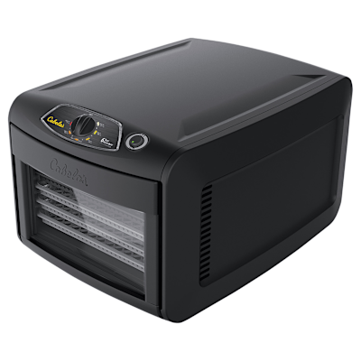 Crank out lots of delicious, dried fruit and vegetable snacks and jerky at home with Cabela’s Heavy-Duty 6-Tray Dehydrator. The dehydrator’s powerful, rear-mounted, 800W heater and fan force hot air horizontally across each individual tray towards the core to ensure even, consistent drying ‚Äî eliminating the need to rotate trays during the cooking process. High-capacity design offers 1,022 sq. in. of cooking space over 6 trays. The adjustable thermostat delivers precise dehydration temperatures between 80¬∞-160¬∞F. A fold-down door with magnetic closure and clear acrylic viewing window let you monitor cooking without opening the door and disturbing the consistent internal temperature. Durable polypropylene trays won’t get brittle, ensuring years of use. Removable drip tray and drying trays make cleanup quick and simple. Comes with a quick-reference guide. 20.5″L x 14.4″W x 11.8″H. Weight: 14.25 lbs. High-capacity dehydrator for home use Powerful, rear-mounted, 800W heater and fan Force hot air horizontally across trays towards the core No tray rotation needed 1,022 sq. in. of cooking space over 6 trays Adjustable thermostat – precise temperatures between 80¬∞-160¬∞F. 6 heavy-duty polypropylene trays